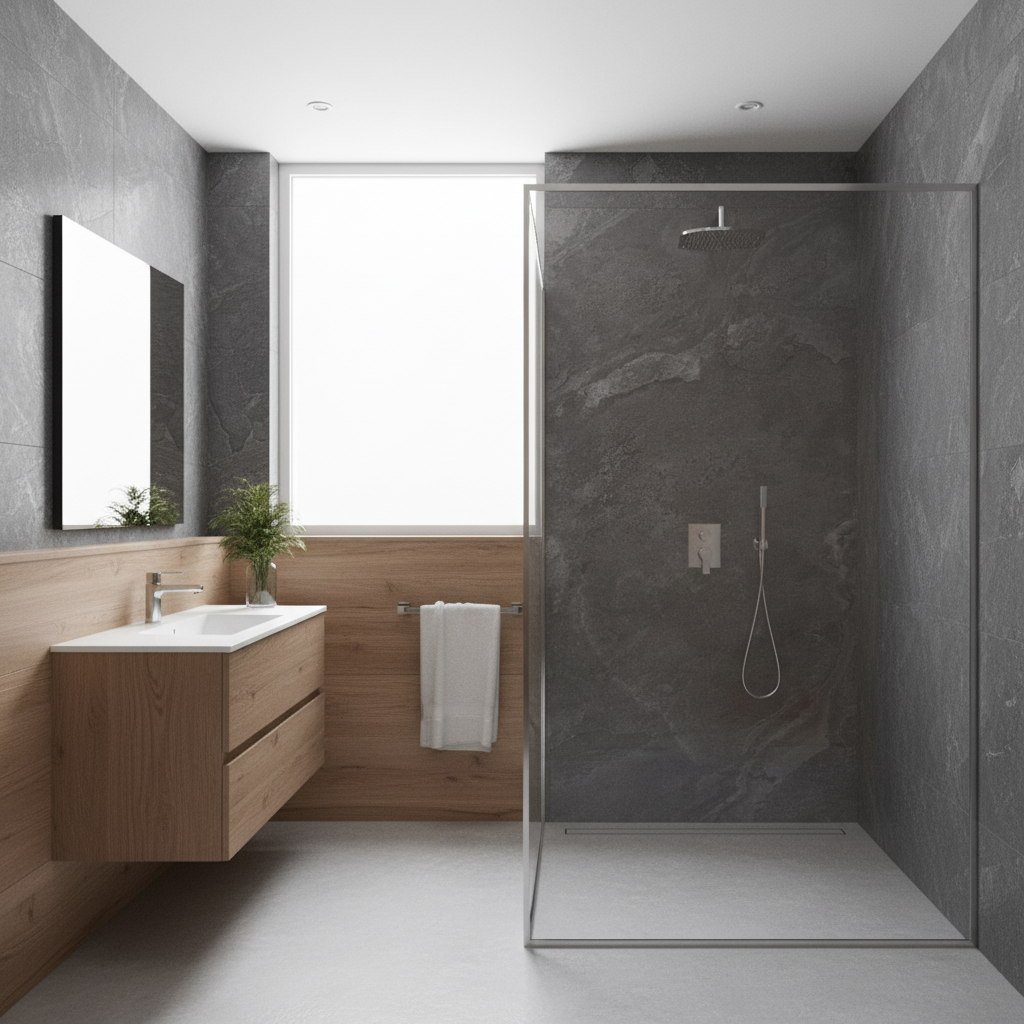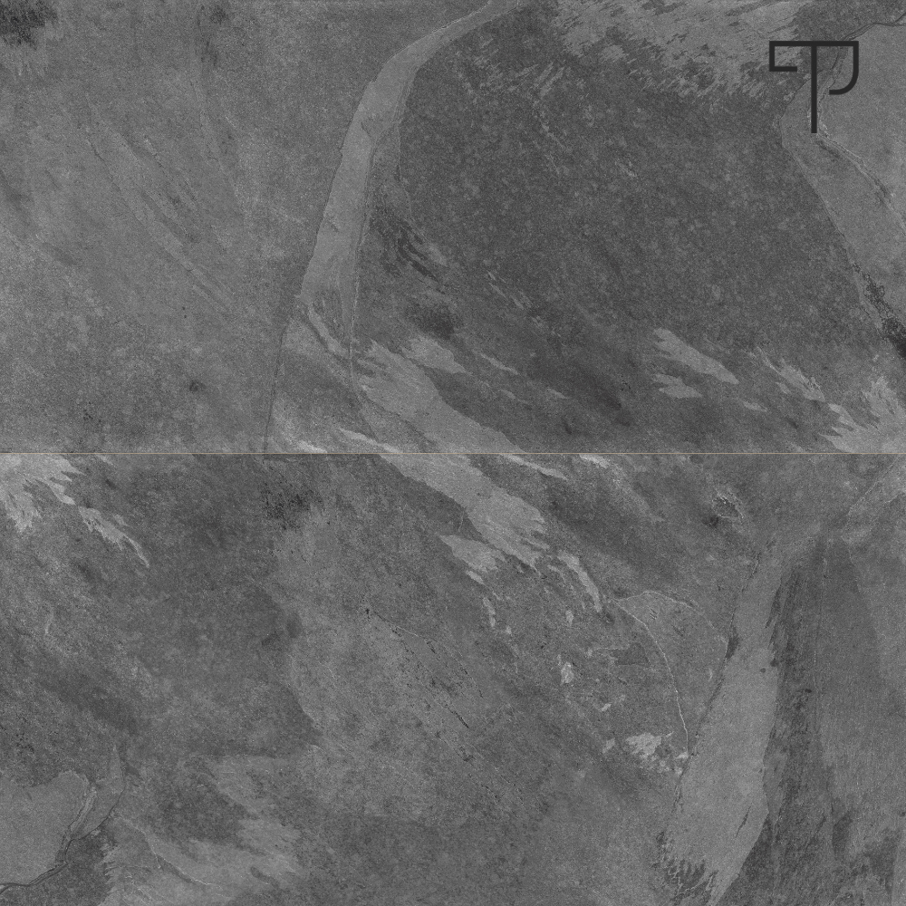De Mantra Charcoal is een hoogwaardige porseleinen tegel met een diepe, antracietkleurige uitstraling en een moderne, industriële esthetiek.